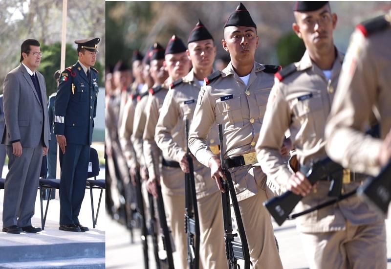 Los 99 soldados juraron lealtad a la Bandera Nacional Mexicana y prometieron defender a la patria.Los soldados desfilaron en el campo militar mostrando respeto a los símbolos patrios y a sus autoridades y fueron convocados a portar con orgullo el uniforme militar.Al concluir con su adiestramiento, los participantes recibirán su cartilla militar liberada y tendrán la libertad de enlistarse en el Ejército si así lo desean.En la ceremonia estuvieron presentes el General de Brigada Diplomado de Estado Mayor, Ernesto Joaquín Geminiano Jiménez, Comandante de la Guarnición Militar de la Plaza; el Capitán Primero de Infantería Diplomado de Estado Mayor, Juan Manuel Rodríguez Flores, comandante de la Onceava Compañía del Servicio Militar Nacional; Martha Beatriz Córdova Bernal, directora de Educación; Rosalía Mejía Leyva, directora de Gobierno; Mauro Álvarez, en representación de la Canacintra; Oscar Kuri Armendariz, director general de la Coalición Empresarial Pro-Libre Comercio; María Isabel Llanes, capacitadora del Taller de Aduanas, Operaciones Comerciales, Logística y Autoempleo; Sensei Humberto Miranda Huerta, instructor de defensa personal; Mayor de Caballería Rigoberto Vega Martínez, Comandante Accidental del Noveno Regimiento de Caballería Motorizada y familias de los soldados.