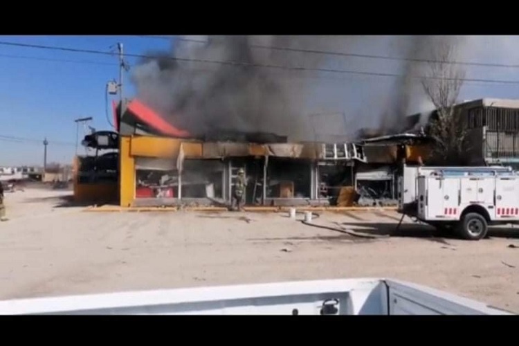 Ciudad Juárez, Chih.- Seis camiones de transporte público, dos vehículos particulares, una tienda Oxxo y un establecimiento de venta de autos usados fueron quemados por desconocidos la mañana de este jueves en diferentes puntos del poniente y suroriente de Ciudad Juárez, en un lapso de dos horas.