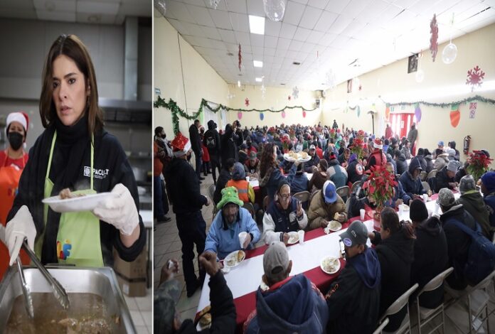 Ciudad Juárez, Chih.- La Presidenta del DIF Municipal, Rubí Enríquez, acompañada de su hija Sofía y servidores públicos, ofrecieron una comida navideña para unas 300 personas que acuden al Comedor Comunitario “El Barreal”.