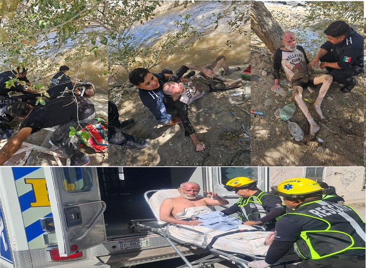 Ciudad Juárez, Chih.- Agentes de la Secretaría de Seguridad Pública Municipal pertenecientes al Distrito Universidad rescataron a un adulto mayor de 73 años que se encontraba dentro de un canal de irrigación.