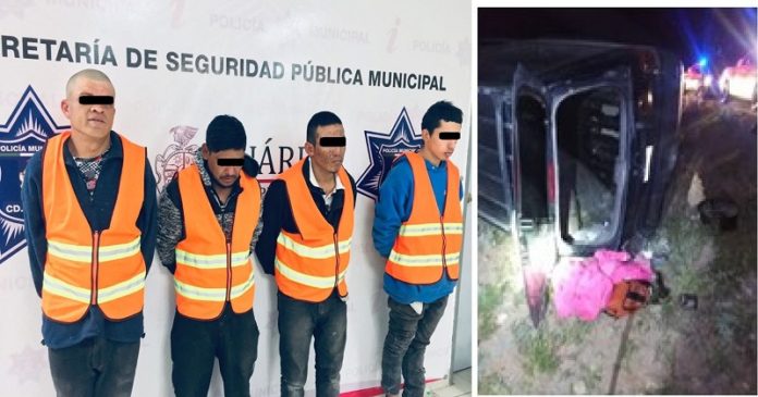 Ciudad Juárez, Chih.- Policías municipales desmantelaron a una banda de asaltantes a comercio; el arresto fue durante una persecución que con concluyó cuando los detenidos se volcaron.