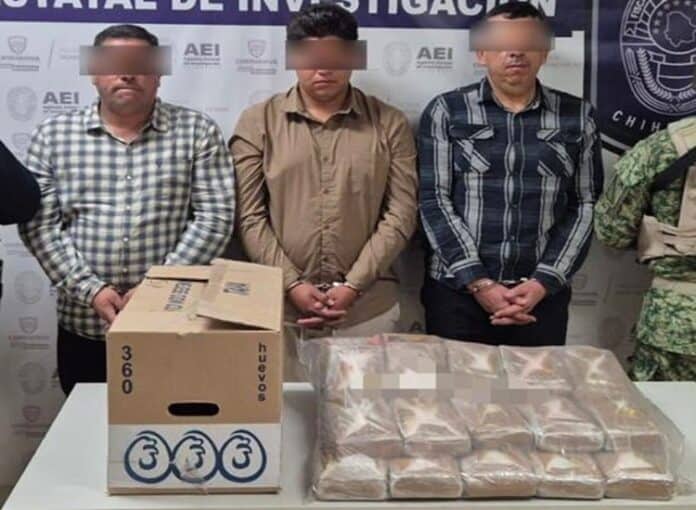 Cd. Juárez, Chih.- En operativo coordinado se detuvo a tres masculinos con más de 26 kilos de cocaína en Juárez.