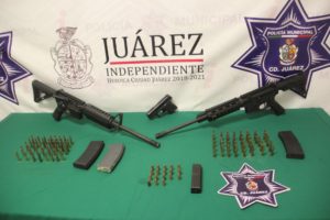La detención se efectuó luego de que elementos municipales que realizaban labores de prevención y vigilancia en la colonia Juárez Nuevo, cuando escucharon detonaciones de arma de fuego, observando de manera simultánea un vehículo de la marca Pontiac Grand Prix, color gris, con placas del estado de Texas, que circulaba a exceso de velocidad.
