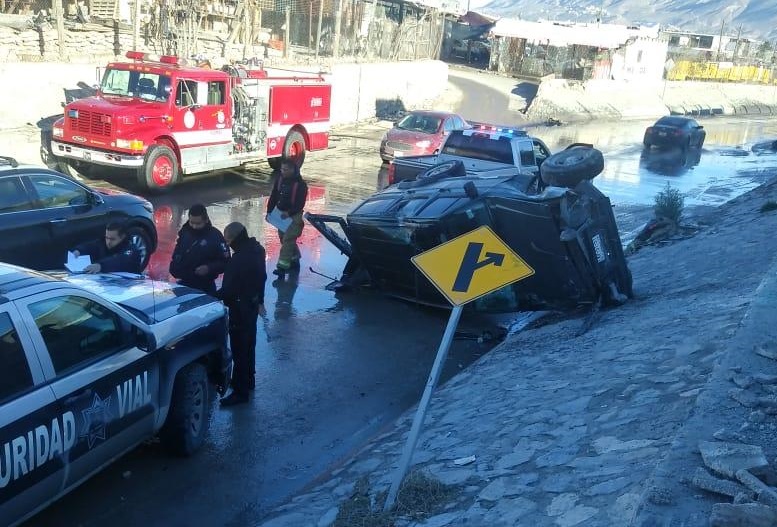 Ciudad Juárez, Chih.- Bomberos atendieron una volcadura que se registró la mañana del este sábado en el Viaducto Gustavo Díaz Ordaz.